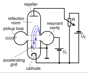 To make an oscillator, the output cavity can be coupled to the input cavity(s) with a coaxial cable or waveguide. Positive feedback excites spontaneous oscillations at the resonant frequency of the cavities.